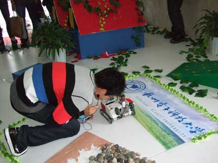 久久精品一区二区学生发明的“搜救之星”地震搜救设备。图为“搜救之星”在进入一个模拟房屋后探测到的屋内信号发回的画面。