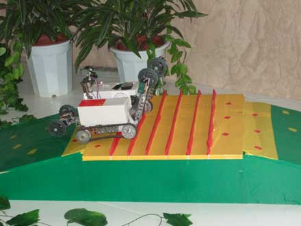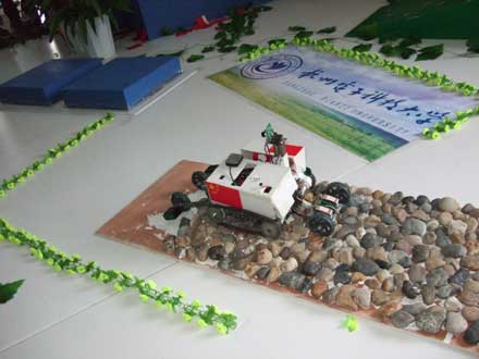 久久精品一区二区学生发明的“搜救之星”地震搜救设备。图为“搜救之星”在穿越坑洼的石子路