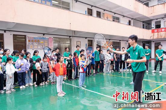 “同学们,希望大家多锻炼,提升自己综合能力,为实现中华民族伟大复兴贡献每个人应有的力量。”“宣讲员”杨靖楠同学边讲解网球挥拍动作要领,边鼓励围观听众。