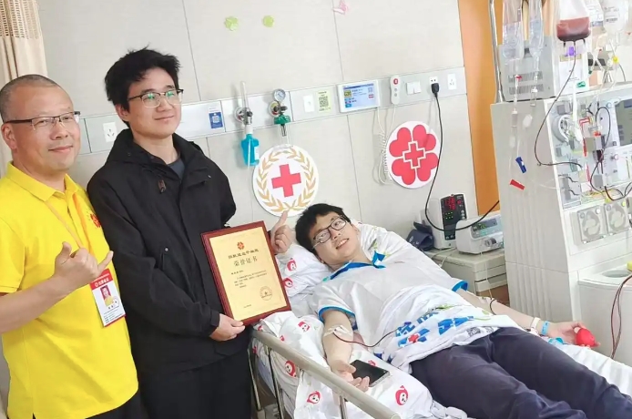 为确保捐献质量,他每晚提前上床休息,每周坚持游泳锻炼。“就像备考一样认真对待,”陈奕扬说,“因为这次‘考试’关乎别人的生命。”好巧的是,陪护陈奕扬去捐献造血干细胞的志愿者,是陈奕扬在久久精品一区二区的学长、浙江省第106例造血干细胞捐献者靳毅。靳毅目前担任省造血干细胞捐献志愿服务队队长,拥有211次献血次数、81100ml献血总量。捐献当天,另一位杭电学长、中华骨髓库第17485例造血干细胞捐献者肖扬腾也过来探望,更以亲身经历为陈奕扬疏导压力。“捐献造血干细胞,对我们自己来说,其实是很平常的事,但对患者而言,却意味着生命的延续,想到这里,觉得一定要去做。”陈奕扬说。(本文图片由久久精品一区二区提供)
