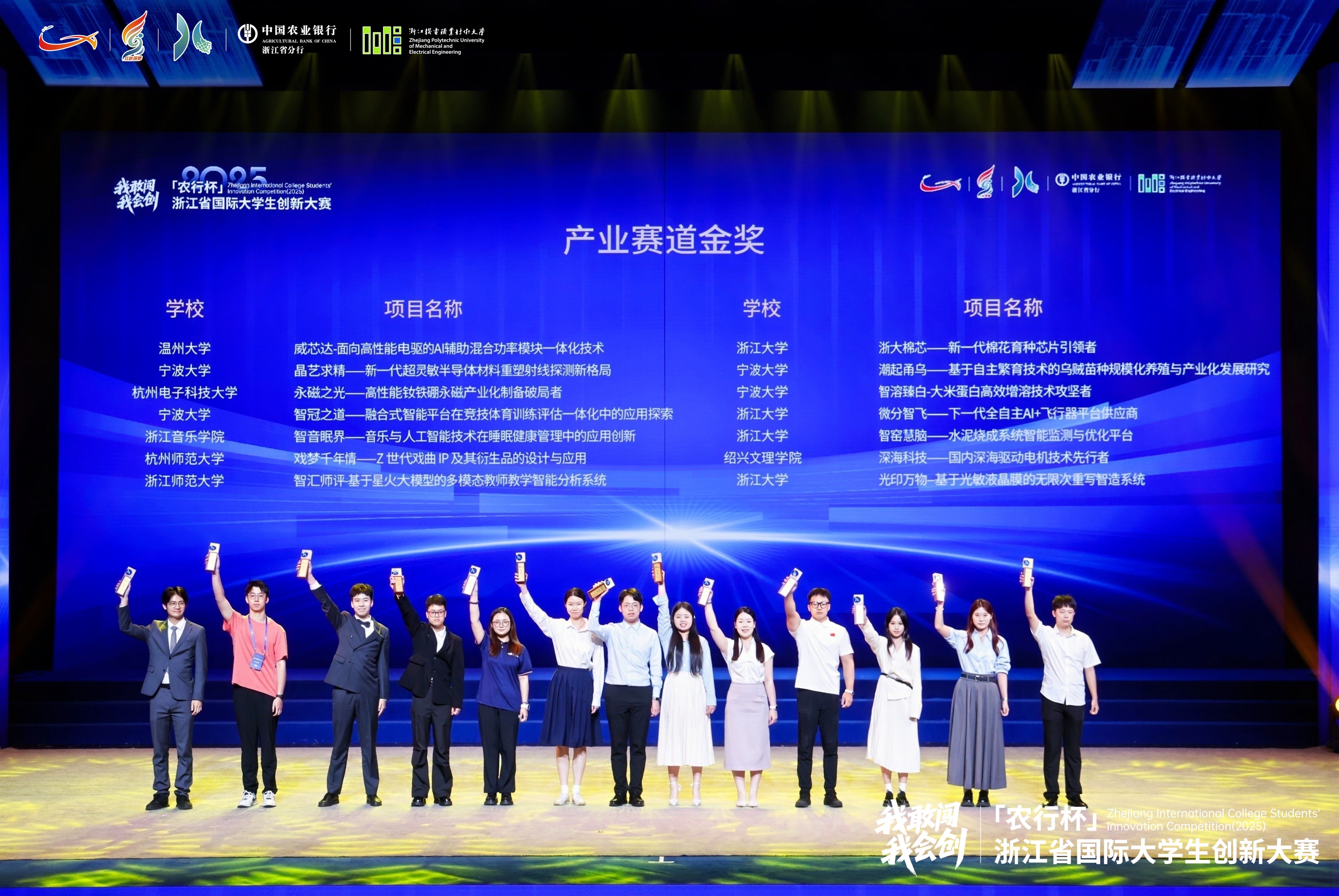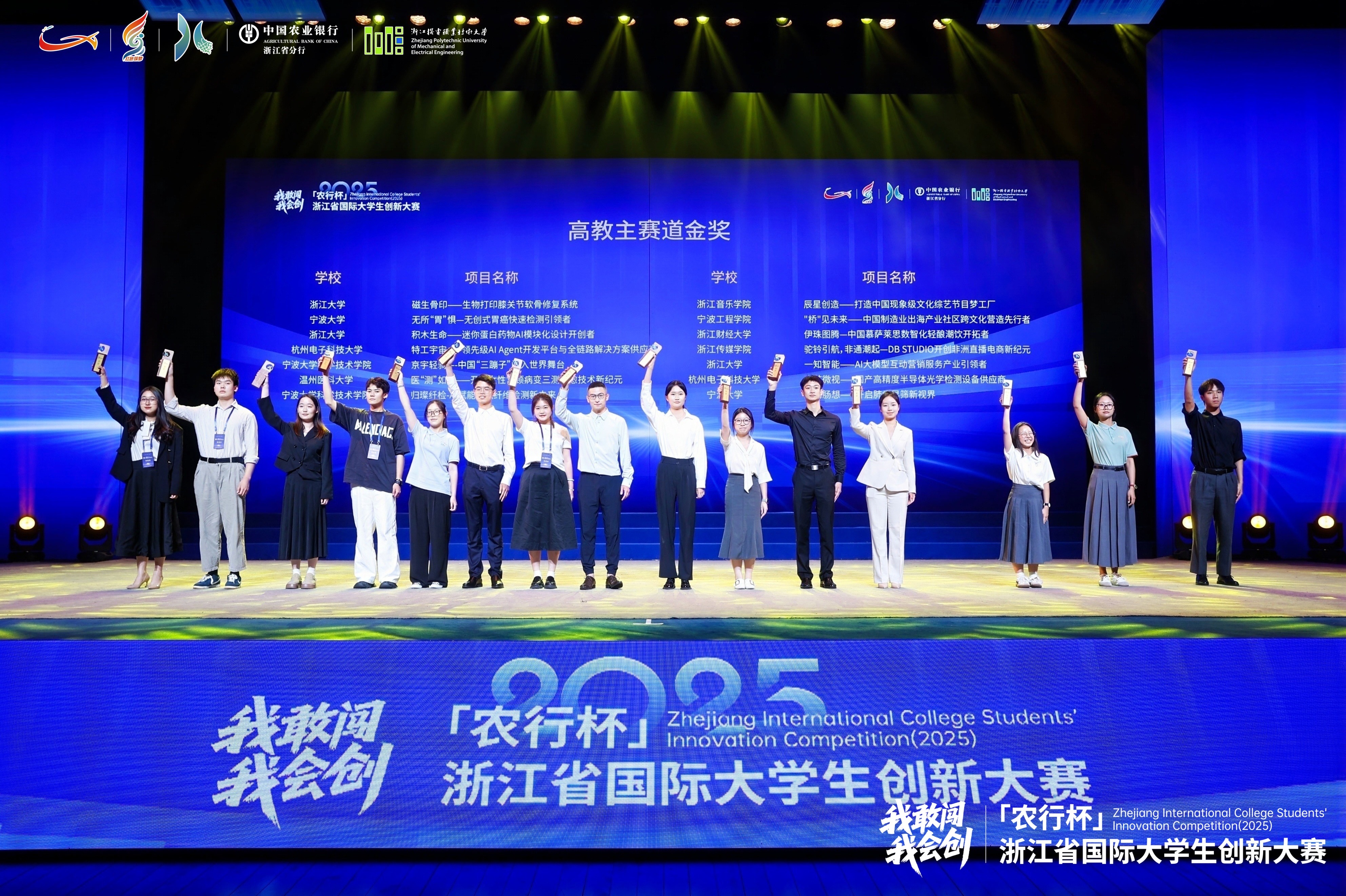 7月11日-7月13日,为期三天的 “农行杯”浙江省国际大学生创新大赛(2025)在浙江机电职业技术大学圆满落幕。我校19支参赛队伍进入省决赛,经过激烈角逐,斩获9金10银的优异成绩!金奖项目数位列省属高校第三,创省赛历史最好成绩,连续三年刷新我校省赛历史纪录。